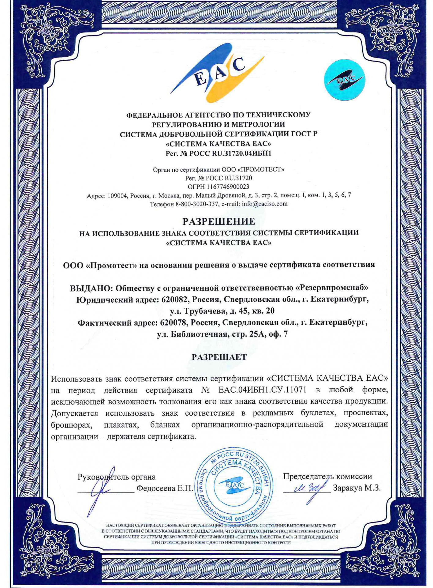 Сертификат соответствия